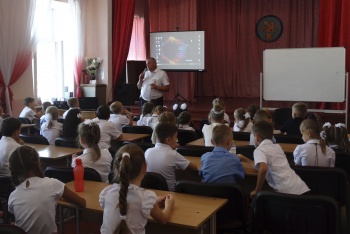 Старший инспектор по делам несовершеннолетних отдела полиции №1 УМВД России по г. Керчи Максим Дьяченко вместе со школьниками рассмотрел ситуации, которые могут угрожать жизни и здоровью ребят, а также алгоритм действий в случае возникновения таких ситуаций.