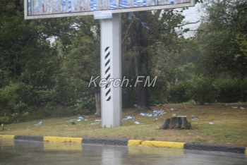 Практически со всех рекламных конструкций посрывало бумагу, некоторые и вовсе поломало.