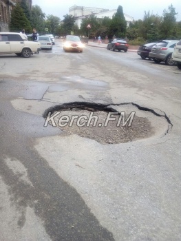 Ремонт ямы на улице Театральной смыло дождем. Как передает корреспондент Керчь.ФМ, яма углубилась еще сильнее.
