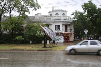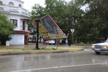 В Керчи ветер сложил рекламный щит пополам