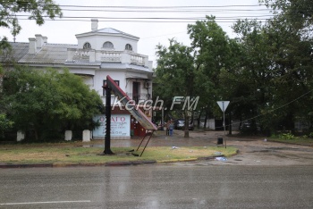 В Керчи сильный ураганный ветер поломал рекламный щит в районе Военкомата. Как передает корреспондент Керчь.ФМ, конструкцию согнуло пополам, также над дорогой висит провод.