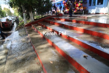 В Керчи 11 сентября на улице Горького, на рынке, произошел прорыв водовода. Водой, которая стекала по ступеням, затопило дорогу, - передает Керчь.ФМ.