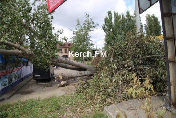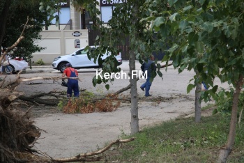 В Керчи 11 сентября в городе убирают последствия шторма, который повалил деревья и билборды. На улице Горького рабочие магазина пытаются самостоятельно спилить дерево, которое упало на магазин, - передает Керчь.ФМ