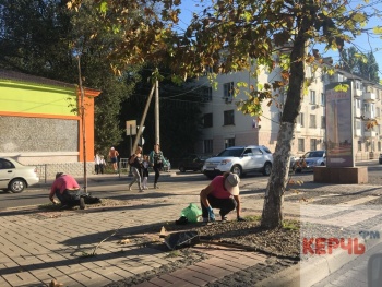 В Керчи на пешеходной дорожке по Пирогова, утром 21 сентября проходил субботник. Как передает корреспондент Керчь.ФМ, люди подметали плитку и облагораживали клумбы.