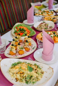 С момента открытия кафе «Вкус Жизни» разделило с Вами множество праздников и мероприятий. Опытная команда поможет грамотно составить меню с учетом Ваших предпочтений и количества приглашенных гостей. К вниманию заказчика будет представлено банкетное предложение с разнообразными блюдами на любой вкус. Канапе, различные закуски, горячие блюда в виде ассорти, авторские праздничные торты. Ваши гости будут в восторге!