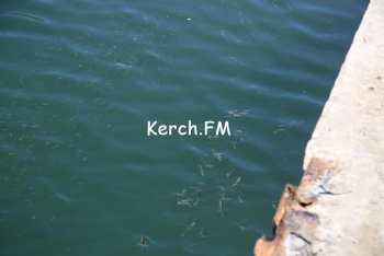 Мальки пытаются пробраться к верху. Однако, им мешает пленка с нефтепродуктов. Керчане опасаются, что из-за этого может погибнуть рыба. На месте происшествия никто не работает.