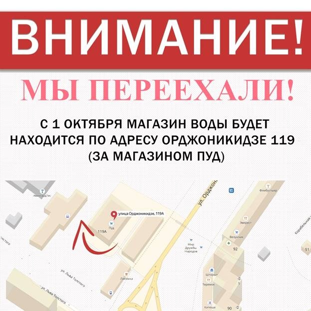 Магазин Воды в Аршинцево переехал на новый адрес: улица Орджоникидзе 119!