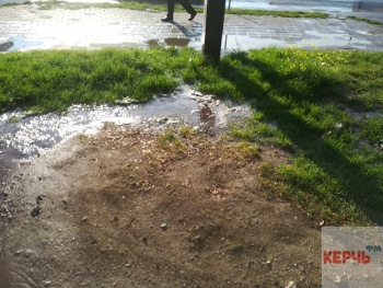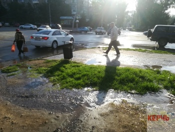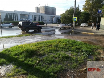 В Керчи утром 2 октября, у кольца на «Институте» чистая вода напором текла из-под земли. Река лилась по тротуару и проезжей части, - передает Керчь.ФМ.