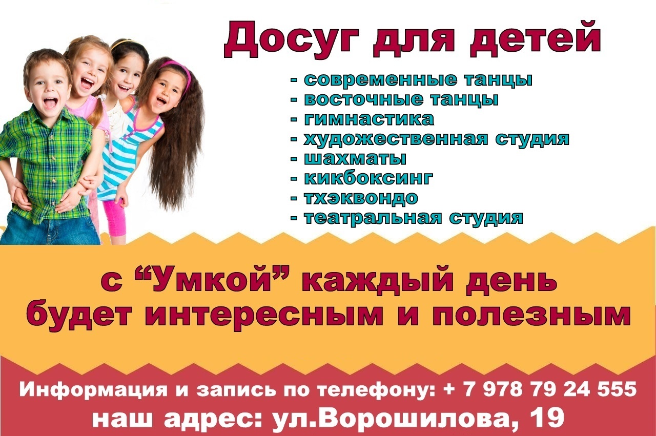 Всестороннее развитие ребенка и наличие умеренной активности способствует формированию целостной личности, поддержанию здоровья, его социализации. Центр развития ребенка «Умка» с радостью приглашает любопытных, веселых, активных и самых задорных ребят на занятия. Мы не только учимся, но и играем, развиваемся, занимаемся спортом и раскрываем свой творческий потенциал!