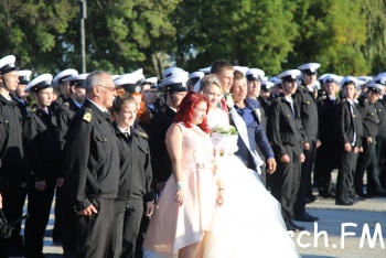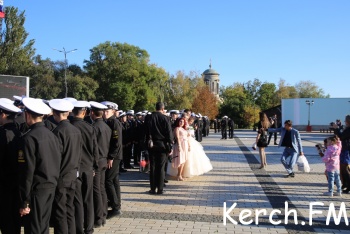 В Керчи 12 октября на площади Ленина проходила генеральная репетиция посвящения в курсанты КГМТУ. На фоне курсантов молодожены устроили свадебную фотосессию, - передает Керчь.ФМ