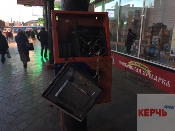 Рано утром 15 октября на автовокзале керчане увидели разбитый платежный терминал. Как рассказали сайту Керчь.ФМ читатели, неизвестные выломали информационное табло, оно висело на проводах.