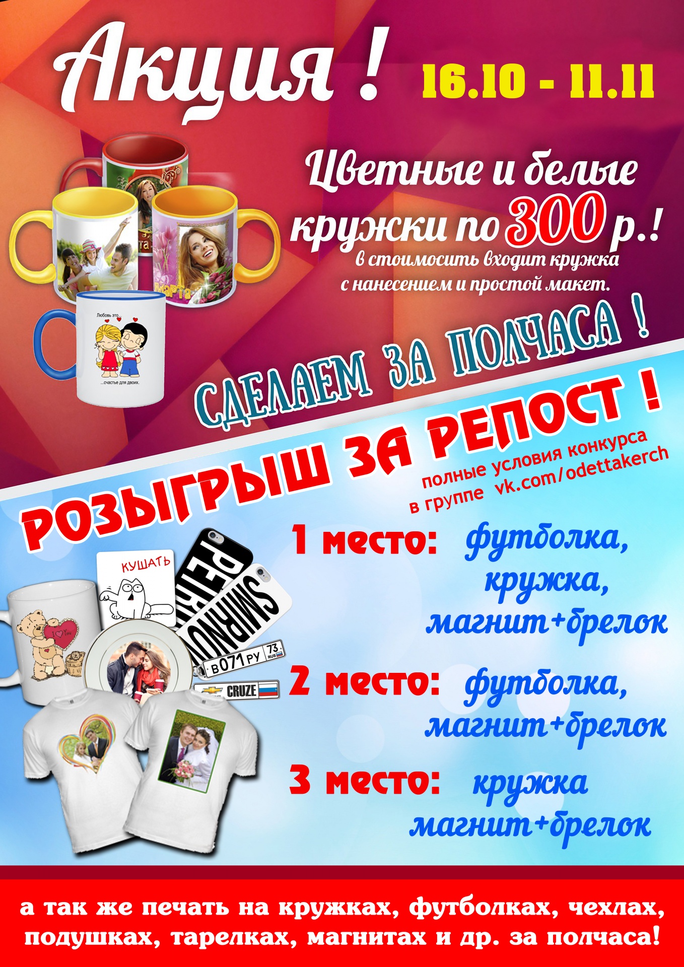 Цветные и белые кружки с вашим фото по 300 р.! * Сделаем за 30 минут!