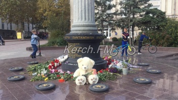 В Керчи 20 октября на городскую площадь керчане все еще несут цветы, свечи, игрушки и сигареты, - передает Керчь.ФМ.