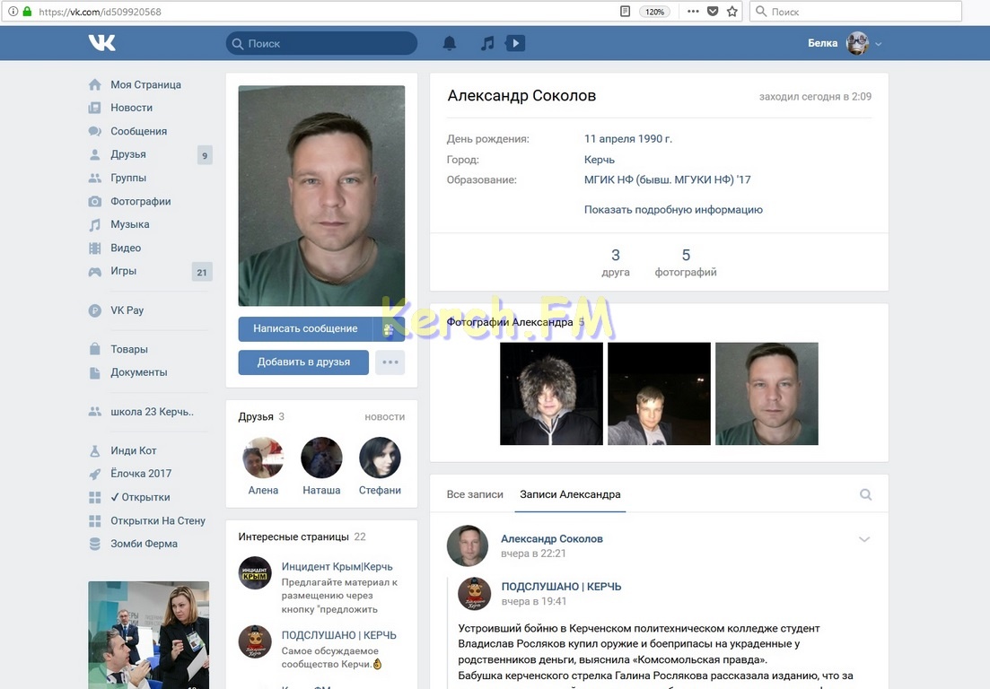 Неизвестные люди создали страничку в социальной сети и от имени Александра Соколова собирают деньги, якобы для помощи семьям пострадавших в Политехническом колледже. Об этом редакции Керчь.ФМ рассказал сам Александр Соколов.