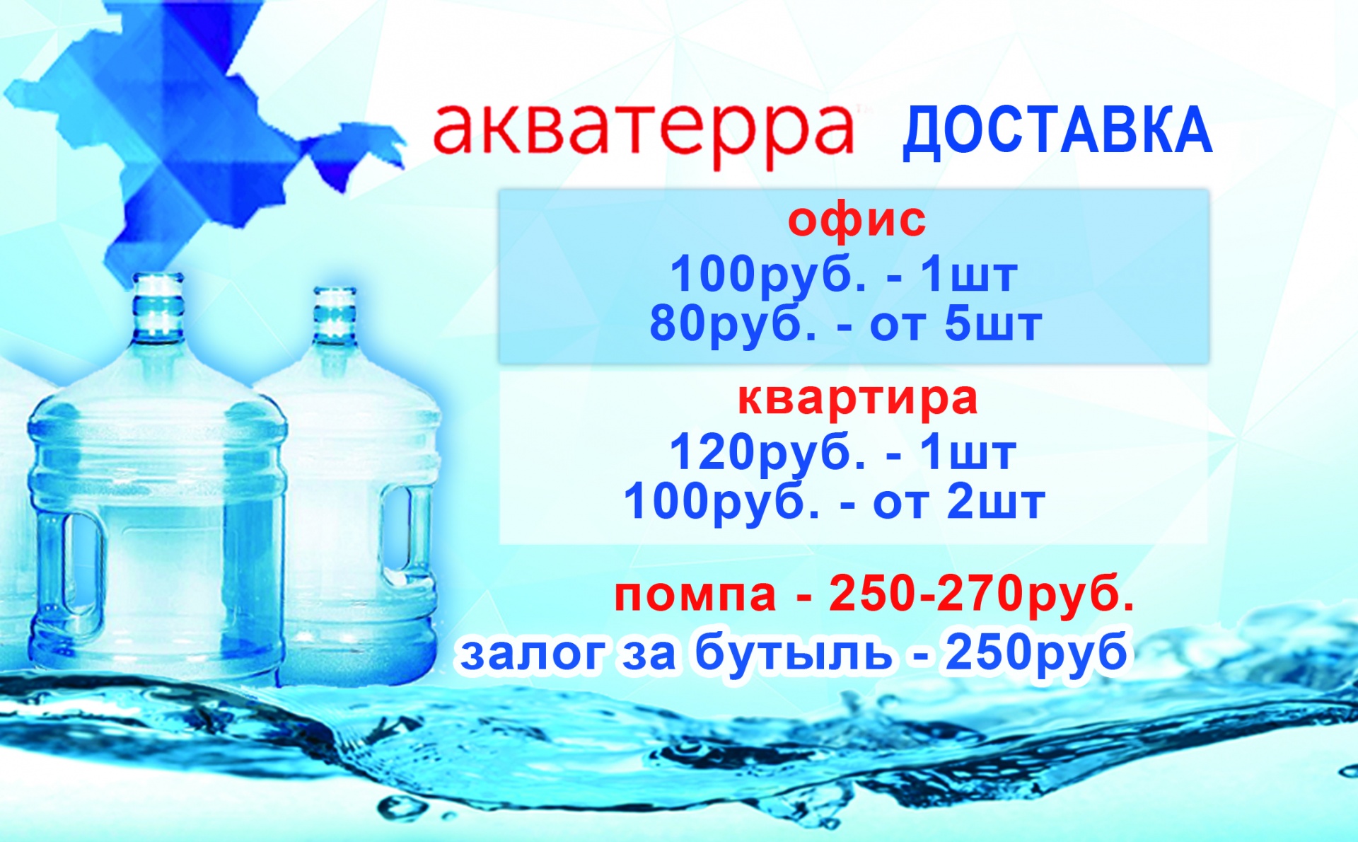 Наша новая служба доставки природной питьевой воды в 19-литровых бутылях на дом, в офис в Керчи