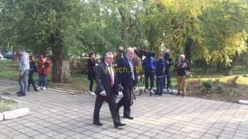 Около 10.00 к корпусу подошли люди в масках. Им дали указания. Ждут приезда Сергея Аксенова. Он сначала встретится с учениками, а после - выйдет к журналистам, которых так и не пустили внутрь.