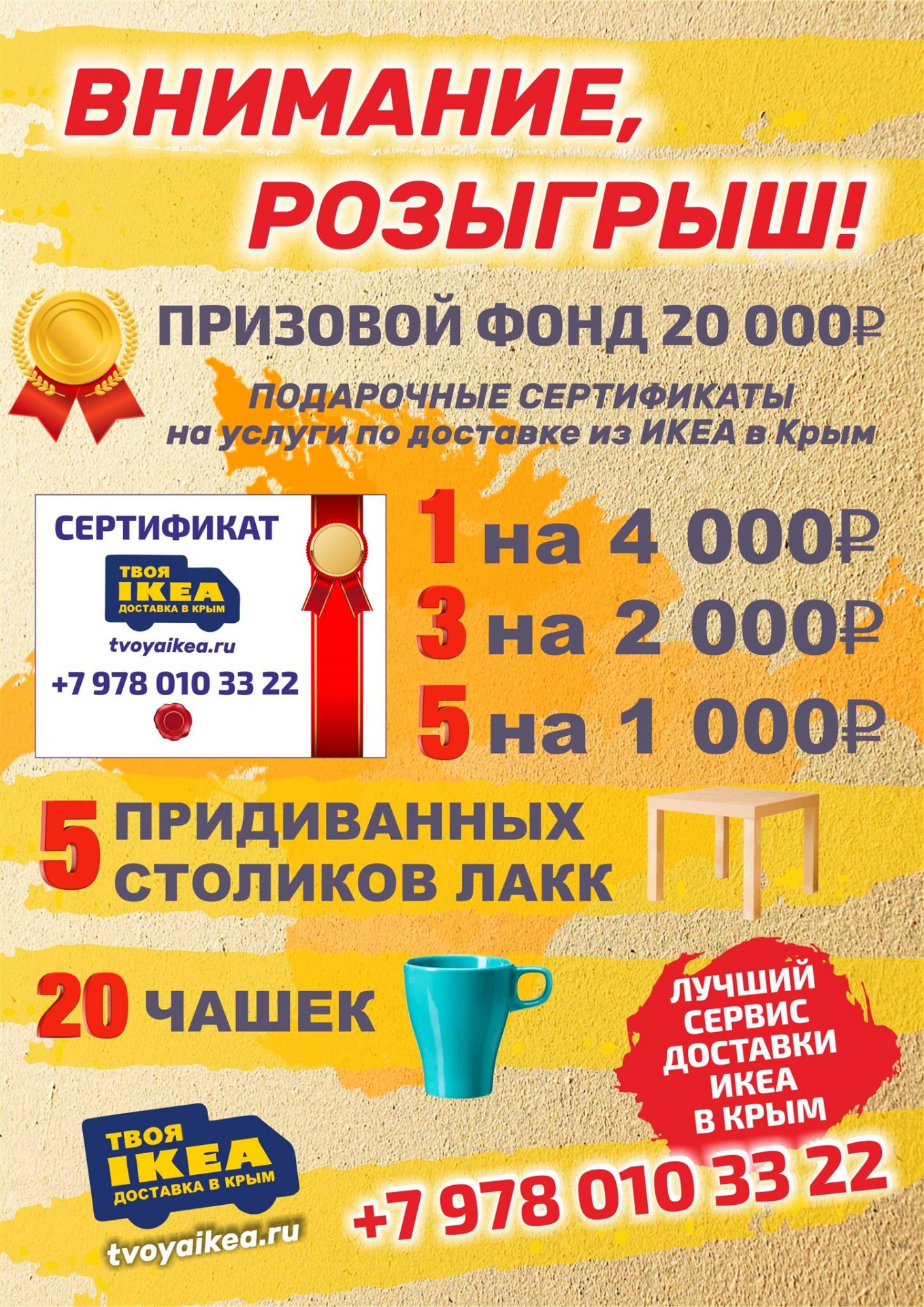 3) Подарочный сертификат на услуги по доставке товара из ИКЕА в Крым на сумму 1 000 руб (5 шт)