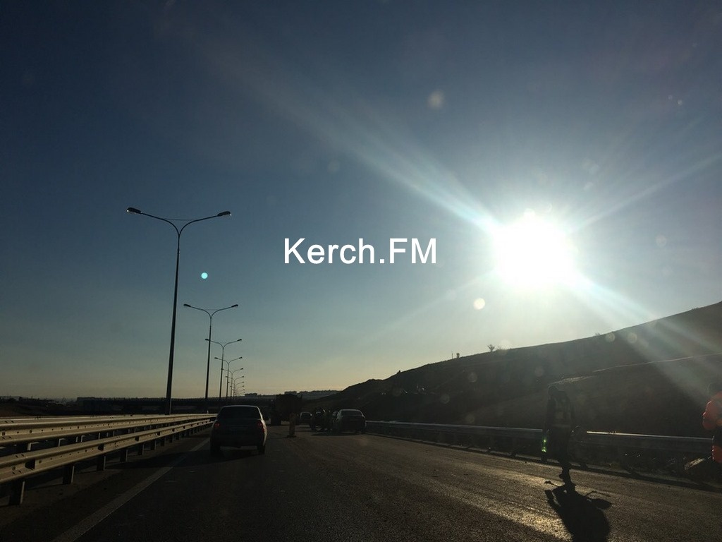 На автоподходах к мосту со стороны Керчи частично закрыта одна полоса