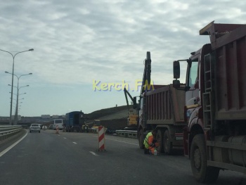 На автоподходах к Крымскому мосту со стороны Керчи частично закрыта одна полоса дороги. Как передает корреспондент Керчь.ФМ это связано с проводимыми работами.