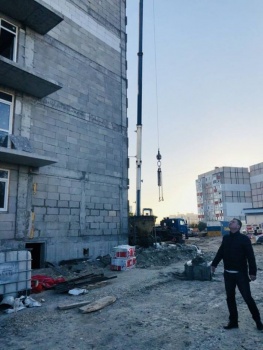 В Керчи строительство дома для депортированных граждан вышло на завершающий этап. Специалисты утепляют фасад, выполняют внутренние отделочные работы и остекление. Работы ведутся и в выходные дни.