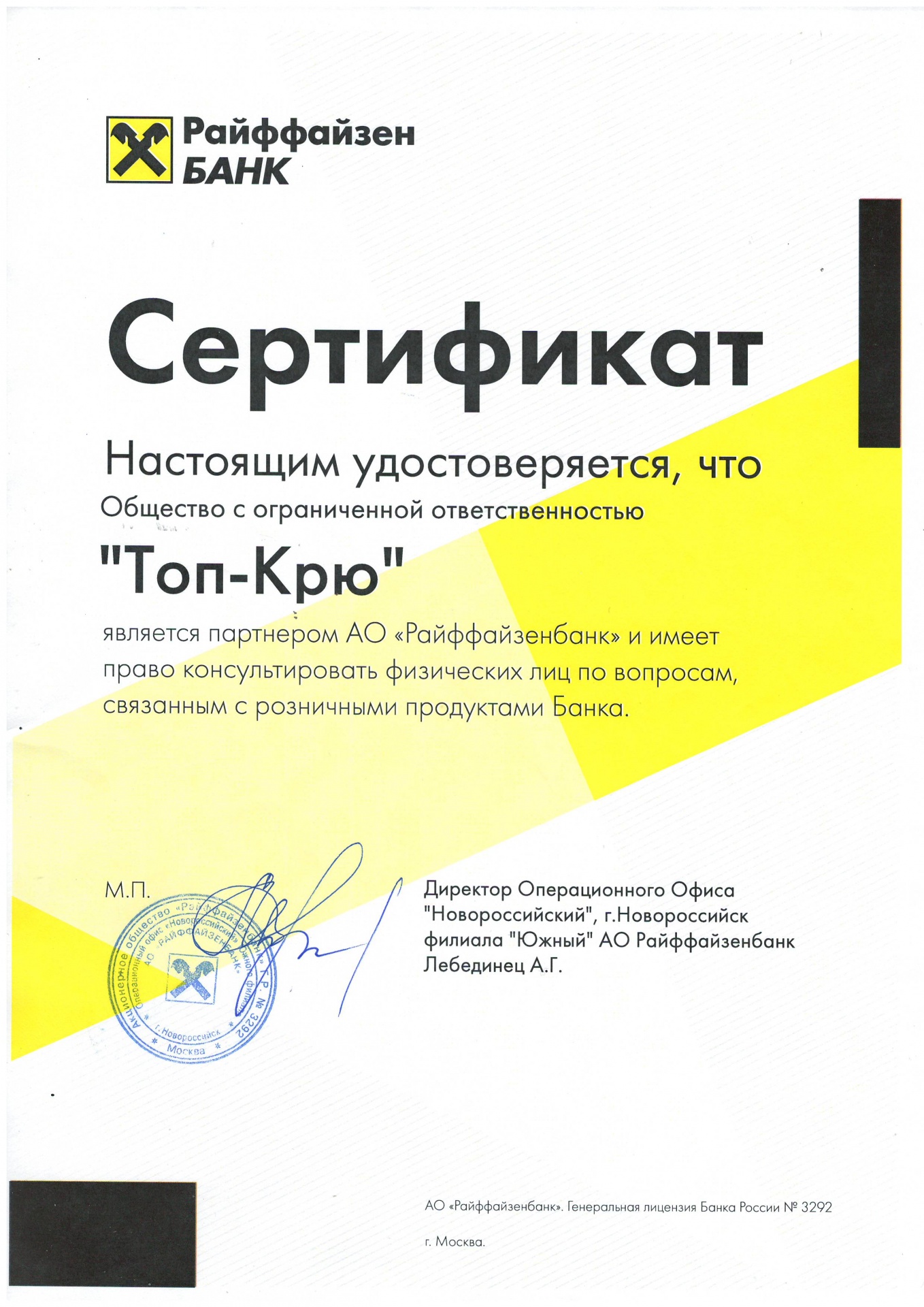 Деятельность ООО "ТОП КРЮ" осуществляется на основании Лицензии ФМС РФ № 20115821299 от 20.10.2015г и по стандартам MLC-2006, ISO 9001:2015.