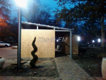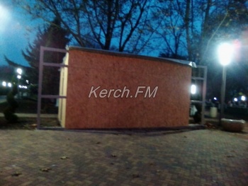 В Керчи продолжаются работы по установке модульного туалета и хозпостройки в Комсомольском парке. Как передает корреспондент Керчь.ФМ, на профильную трубу, из которых сделан каркас будущих построек, прикрепили стены - листы из фанеры.