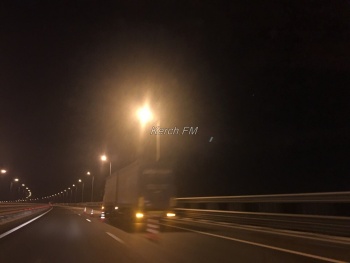 На Крымском мосту 18 ноября сломалась фура. Фото в Керчь.ФМ прислали постоянные читатели. Керчане отметили, что из-за этого частично ограничили движение на одной из полос дороги. Также перед ограничением стоит автомобиль дорожной службы со знаками.