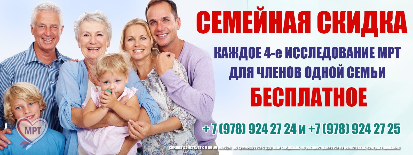 Акция «Семейный Комплекс МРТ»: каждое 4-е исследование МРТ для членов одной семьи — БЕСПЛАТНОЕ. (Акция действует с понедельника по пятницу).