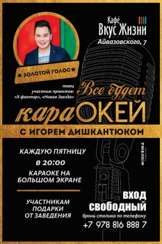 07.12, пятница: караоке-вечер с Игорем Дишкантюком в 20:00 (вход свободный).
