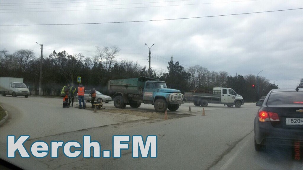 Свершилось: на перекрестке в Керчи водоканал засыпает яму