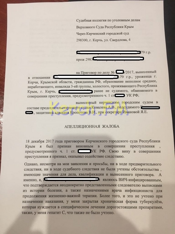 Я допускаю, что сокрытие его диагнозов делалось специально, чтобы не показывать, что больных ВИЧ в крымском СИЗО не лечат ничем, а после устоявшегося приговора его все равно на материк отправят, а дальше это будет уже их головная боль.