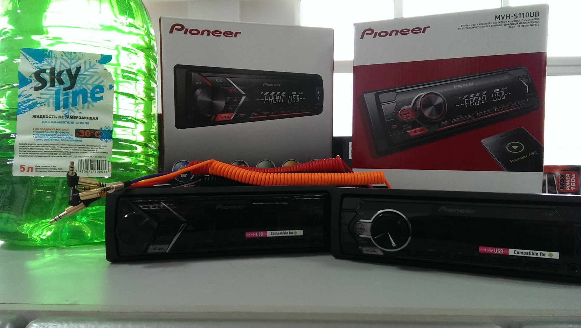 Только до конца декабря приобретите автомагнитолу Pioneer 100UB или Pioneer 110UB и получите в подарок один витой кабель AUX любого цвета + незамерзающею жидкость SKYLINE 5 литров