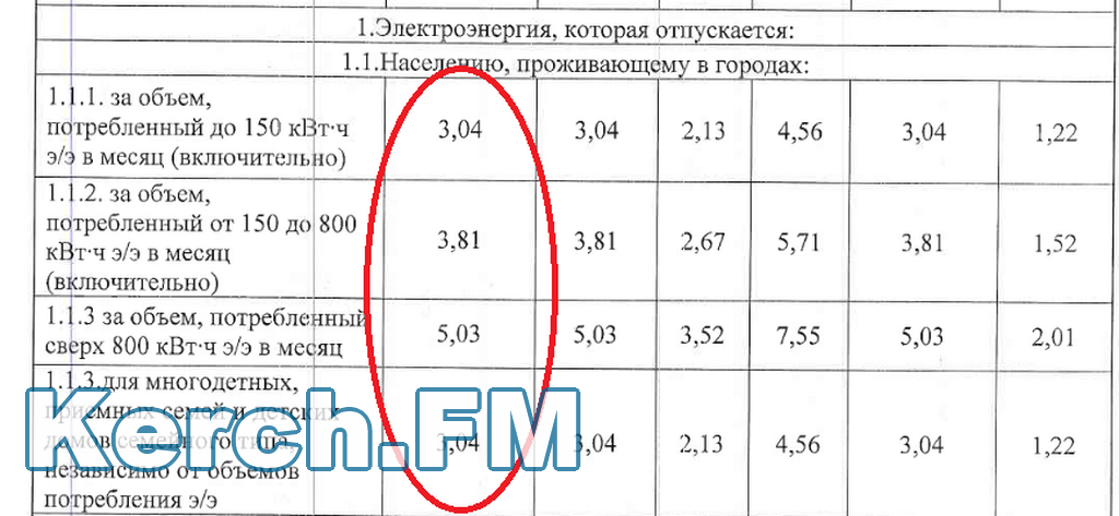 Согласно приказу "Об установлении тарифов на электрическую энергию для населения и потребителей, приравненных к категории «население», по Республике Крым на 2019 год", в Керчи с 1 января по 30 июня 2019 года будет действовать тариф, который указан в первой колонке.