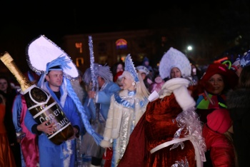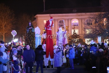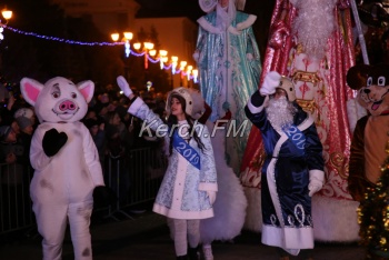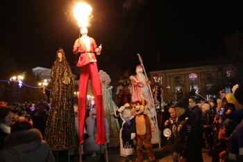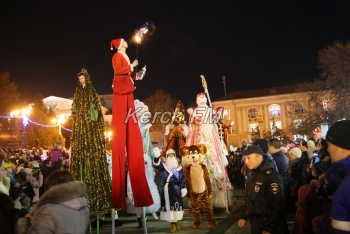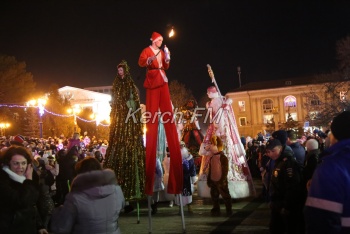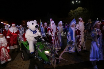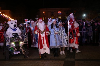 В Керчи 22 декабря новогодние празднования открыл парад Дед Морозов. Во главе с участниками шли актеры на ходулях, один из них выпускал пламя огня, - передает Керчь.ФМ.
