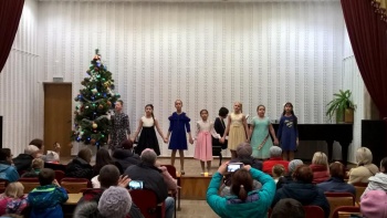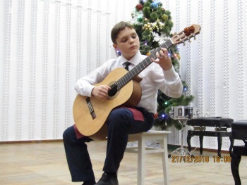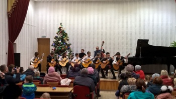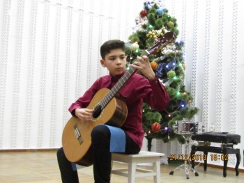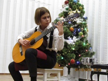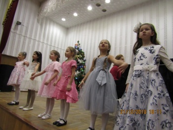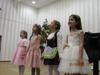 Яркими новогодними звёздочками сверкали на сцене ансамбли юных исполнителей - вокальные ансамбли «Каприс» и «Дебют» (рук. Чепурных И.П.), вокальный квартет учениц 2-го класса (преп. Конюкова Н.М.), ансамбль гитаристов (рук. Кизимов Ю.В.) и Образцовый хоровой коллектив «Кампанелла» (рук. Грибова Т.Л.). Образно и эмоционально выступали маленькие солисты-вокалисты, тепло приняла публика выступление юных гитаристов (преп. Мягкоголовый А.Д.) и баяниста (преп. Куртмеметов Э.Р.).