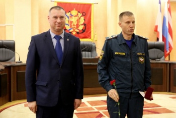 Заместитель Главы администрации Керчи Сергей Шимко от имени администрации города поздравил коллектив керченских спасателей. Особо отличившиеся по службе были удостоены городских наград.