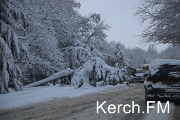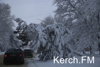 В Керчи 7 января в Аршинцево произошел деревопад. В разных частях города под тяжестью снега гнутся и падают деревья. Журналисты Керчь.ФМ только на улице Орджоникидзе увидели три упавших дерева.
