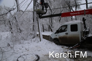 В Керчи 7 января на улицах Нестерова и Розы Люксембург произошли обрывы проводов из-за снегопада. Поломку устраняли сотрудники КРЭСа, - передает Керчь.ФМ