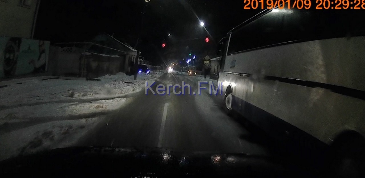 На Чкалова в Керчи 9 января, на скользкой дороге, междугородный автобус столкнулся с легковушкой.
