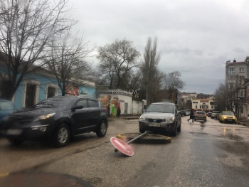 В Керчи 11 января на ул. Козлова сбили дорожный знак. Фото в Керчь.ФМ прислали постоянные читатели. На месте стоит автомобиль на «аварийке», но не известно, причастен ли он к происшествию