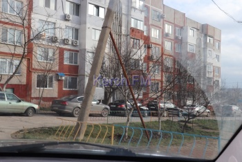 Столб уличного освещения может упасть на детскую площадку, расположенную во дворе дома по Блюхера 17. Аварийную конструкцию подпирает металлический костыль, - передает Керчь.ФМ.