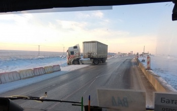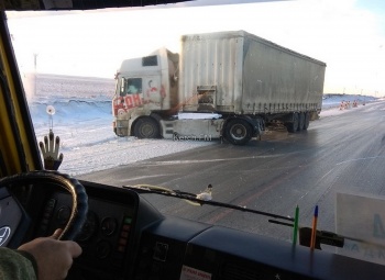 На заледеневшей Керченской трассе занесло фуру (видео)