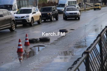 В Керчи 17 января на Адмиралтейском проезде установили конусы и покрышки около огромной ямы. В ней вчера несколько автомобилей лишились колес.Водители вызвали ГИБДД для составления протокола и фиксации повреждений, - передает Керчь.ФМ.