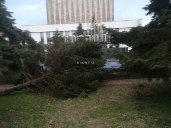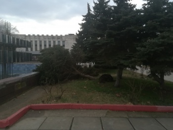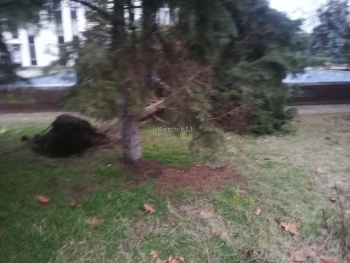 В Керчи, около ДК «Корабел», с корнем вырвало живую ель. Фото в Керчь.ФМ прислали постоянные читатели. Керчане отметили, что дерево упало на фонтан.