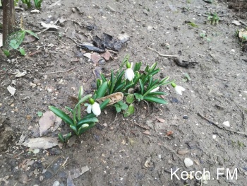 В Керчи на клумбах около многоэтажек зацвели подснежники. Фото в редакцию Керчь.ФМ прислала постоянная читательница.