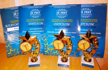 Керчане привезли с фестиваля два диплома лауреатов 1 степени и диплом лауреата 2 степени, в номинациях народная крымскотатарская хореография и стилизованная крымскотатарская хореография.