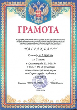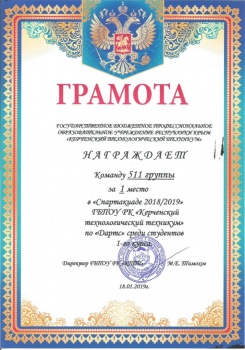 Первое место завоевал дружный коллектив группыи № 511 (профессия - Сварщик ручной и частично механизированной сварки (наплавки). Мастер производственного обучения - Морозова Л.Н.) - 396 очков.
