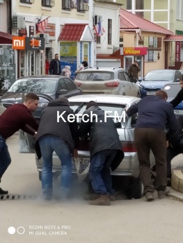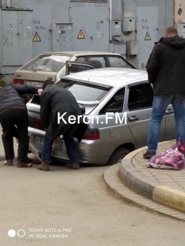 В Керчи 29 января в переулке Кооперативный автомобиль марки «ВАЗ» провалился в ливневку. Водитель вместе с прохожими пытаются самостоятельно достать машину. Об этом Керчь.ФМ сообщили очевидцы.