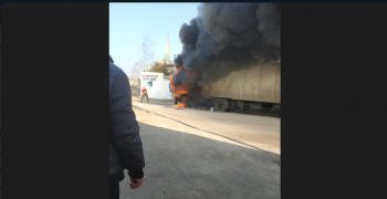 В соцсети разместили виде, где видно, что кабина грузового автомобиля Вольво полностью охвачена огнем.
