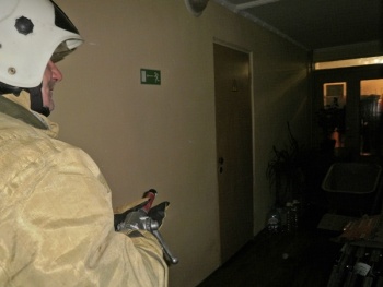 По замыслу тренировки, условное возгорание произошло в результате короткого замыкания электропроводки в одном из кабинетом на первом этаже здания. Площадь составляет 12 кв.м. По причине ночного времени суток людей в здании администрации нет, эвакуация не требуется.